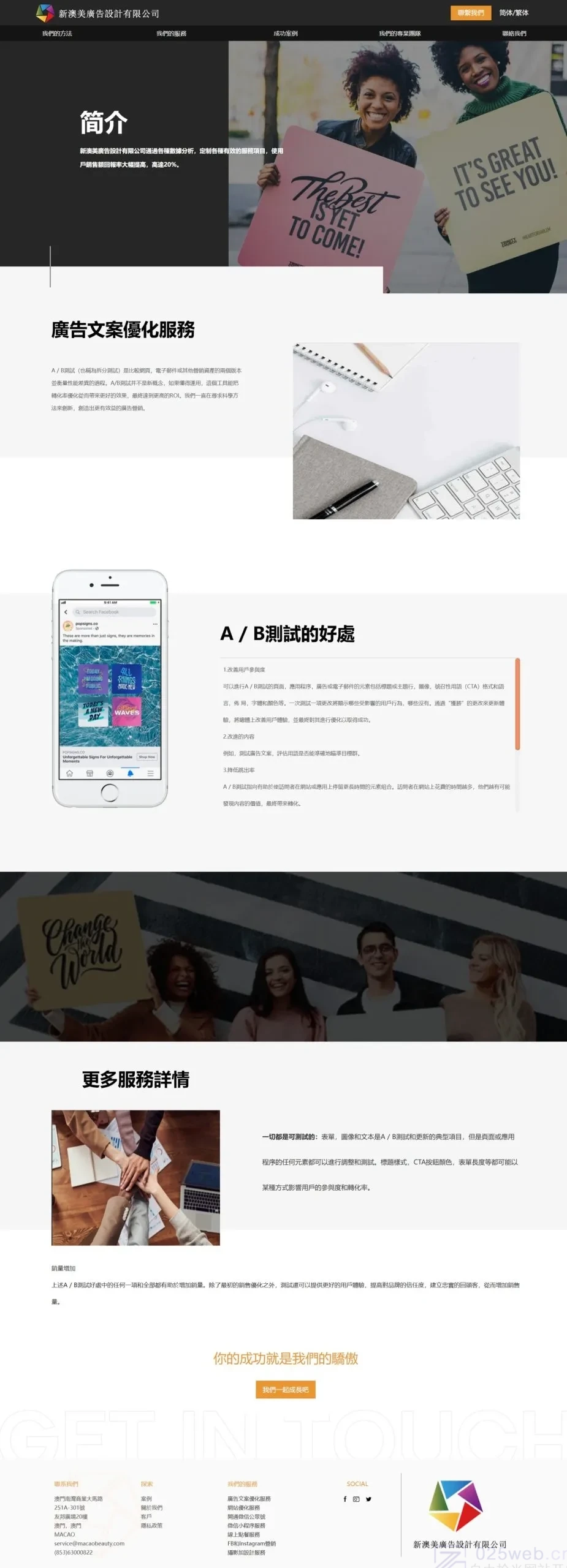 新澳美廣告設計 (澳門) 有限公司提供一站式网络营销服务,将广告设计与网 路营销相结合,为您提供高回报率的广告设计与大量的精准客户流量。 由调研、策划、设计、推广、优化有效提高营收的一站式整合营销方案。